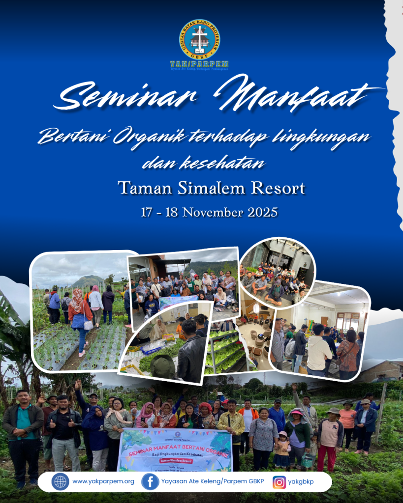 Kegiatan seminar terkait manfaat bertani organik terhadap lingkungan dan kesehatan diperuntukkan bagi petani organik dampingan Yayasan Ate Keleng dengan maksud untuk meningkatkan pemahaman dan wawasan petani tentang sistem budidaya bertani organik. Dalam kegiatan ini, pihak Taman Simalem Resort yang sudah konsisten dalam melakukan peryanian organik menjadi pembicara yang menyampaikan tentang aktifitas bertani organik di kawasan TSR maupun di lahan petani lokal yang didampingi oleh pihak TSR.